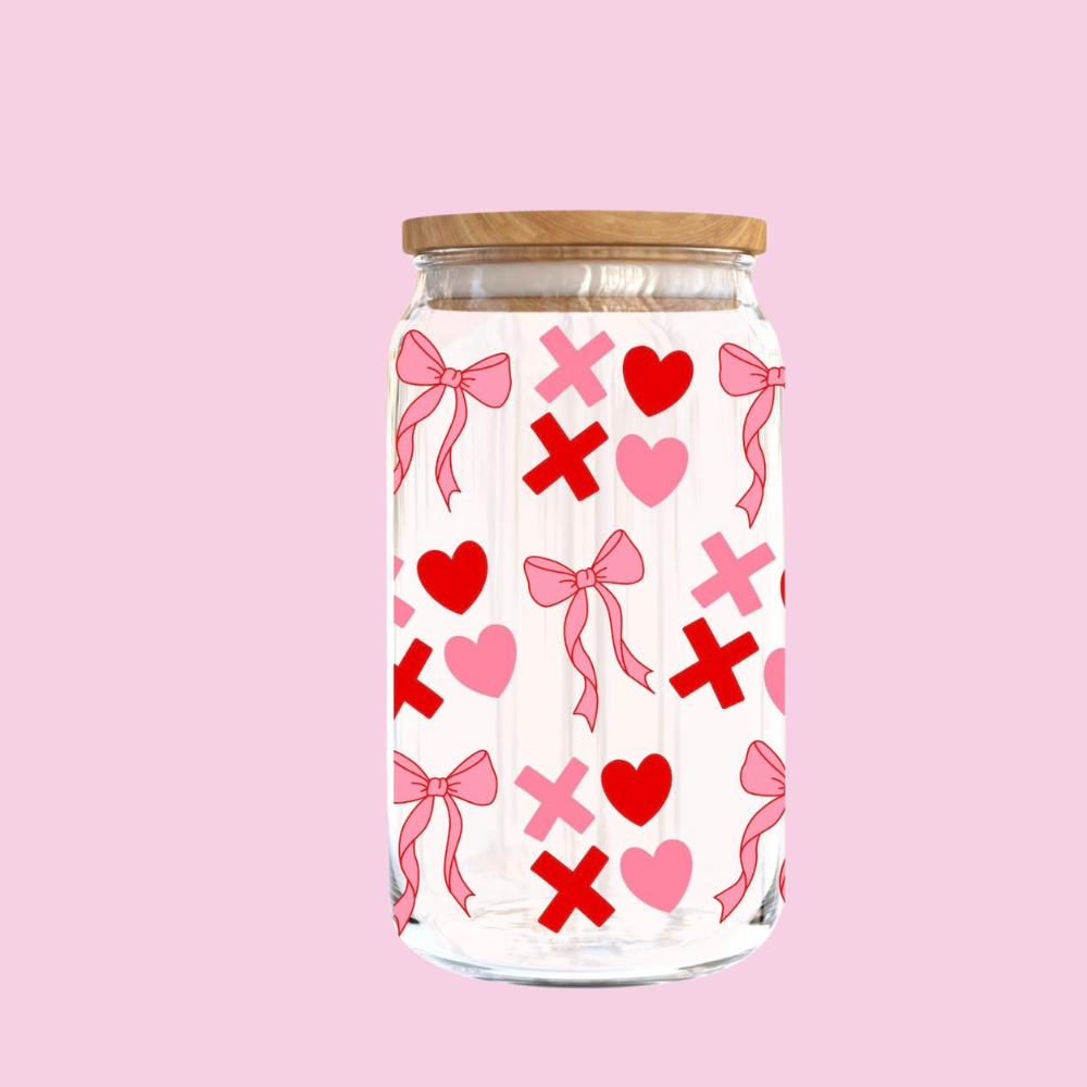 Pucker up with our Kisses & B(O's)w glass cup—a flirty Valentine's Day essential that brings charm to every sip. Adorned with playful kiss and bow designs, this delightful drinkware is perfect for sharing sweet moments with your loved one. Ideal for hot chocolate, coffee, or cocktails, it's the kind of cup that makes you smile before you even take a drink. Give your Valentine's Day routine a dose of whimsy and romance!